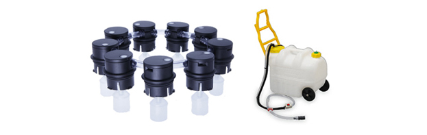 BFS一括補水システムも併せてご使用することにより、従来の補水作業の手間の軽減(スピードアップ)と、液漏れ等によるバッテリーの劣化を防ぎます。
